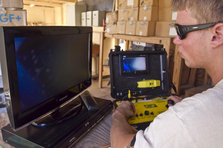 | Keywords: Robotic inspection of water tanks DVIDS337674.jpg en Field Tech Noah Peyer of Tank Industry Consultants controls a remote operated vehicle around the inside of a 200 000 gallon fresh water tank Nov 3 on Camp Lemonnier The ROV has a video camera that sends a signal back to a DVD recorder monitor and control unit to visually inspect the quality and condition of the water holding tank The inspection is being conducted to insure the quality of the water held with in the tank remains at a high quality and the vessel is physically sound <br>Unit Camp Lemonnier Djibouti 2010-11-03 U S Navy photo by Chief Petty Officer Robert P Gallagher https //www dvidshub net/image/337674/robotic-inspection-water-tanks 101103-N-+++++-001 2010-11-08 10 36 DJIBOUTI DJ PD-USGov-Military-Navy Camp Lemonnier Images from DoD uploaded by Fæ |