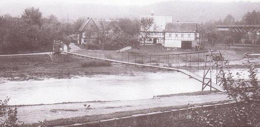 Keywords: Rochlitzer Schaukelsteg (1902).JPG Fotografie der Hängebrücke über die Rochlitzer Mulde Archiv des Heimatvereins Rochlitz 1902 author PD-old Hängebrücke Rochlitz