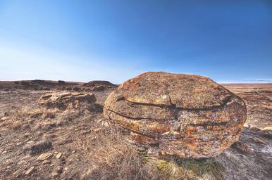 Keywords: rock boulder stone single nature material round erosion geology desert national park red big massive shape texture surface cracks vegetation