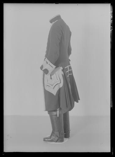 | Keywords: Rock, justaucorps, i blått kläde till Gustav IIIs franska jaktdräkt - Livrustkammaren - 53306.tif LSH artwork LeDuc Skräddare sv Rock i blått kläde med stora galondekorerade fickor och gudkantade knapphål längs med båda framkanterna Modellen är figurnära med hög krage har svängd framkant som öppnar sig nedåt sidsömmarna är kraftigt utåtvinklade med veckade sidsprund Ärmarna är smala med stora mörkröda sammetsmanschetter dekorerade med galoner Klädet är i en mycket fin kvalitet troligen fransktillverkat Rocken har flera öppet skurna kanter tex kanten nedtill och kanten fram Kragen har rött sammetsfoder och en smal guldgalon mitt fram med två runda metallknappar Rygen bak har samma förstärkning uppe i nacken som västen Kragen har rött sammetsfoder och en smal guldgalon mitt fram med två runda metallknappar Sprundet mitt bak saknar överlappning är galonkantat samt ytterligare markerat med tre guldkantade knapphål på tvären från sprundet och ut åt sidorna De översta kant i kant med guldgalonen och därefter med 5 5 cm mellanrum Där knapphålen slutar finns en slags inprovning som gör att vidden i rocken lägger sig som ett extra veck på bakstycket Sprundöppningen är 45 cm lång Sidsprunden 40 cm långa kantas också av guldgalon som även inramar knappen som sitter i sidan ovanför vecken Rocken är dekorerad med fyra sortes galoner På kragen en smal ca 1 cm bred enklare sort Längs med framkanten sitter en guldgalon 2 5 cm bred med sick sack mönster den finns runt halsen fram på båda sidor om sprundet mitt bak på båda sidor om sidosprundet I sidosprundet är de glänsande i guld Ficklocken är nästan helt galonklädda 2 5 cm galonen kantar ficklocken och innanför denna sitter en 5 7 cm bred i både silver och guld Denna breda silver och guldgalon sitter runt hela ficklocket på själva rocken vilket gör fickan mycket framträdande Rocken har 11 större knappar och 11 riktiga knapphål samt 11 oöppnade på högra sidan för att få en symmetri i dekoren Alla knapphål är ställda lite snett uppåt De är 7 cm långa och öppningen 5 cm Översta knappen sitter 5 cm ned och därefter med 5 cm mellanrum Tre metallhyskor och hakar gömmer sig i framkanten mellan kläde och foder övre hyskan saknas Ärmarna är snäva med överärm och underärm som är svängda Manschetten är påsydd vidare än själva ärmen den är ca 15-16cm bred och utsidan är i röd sammet Längs kanten sitter en guldgalon 2 5 cm bred och de lodräta sömmarna täcks av en bredare guldgalon 3 5 cm som endast förekommer här på plagget Mellan guldgalonerna sitter den breda silver/guld galonen samma som runt fickorna den är lagt i bågmönster vilket gör att den har sytts fats med småveck i innerkurvorna Manchetten knäpps med två knappar fram och en bak samma knappar som på rocken Knapparna är förgyllda och har ett flätat mönster på ovansidan kärnan är av trä Antal knappar 27 st 2 mindre och 25 större 16 mm Galoner 14 meter och 61 cm 827 cm 2 5 cm br 425cm 5 7 cm br 80 cm 3 5 cm br 75 cm 1 cm br Foder i rött ylle Inga spår av ändringar Kilar i sidosprundets veck i övrigt inga skarvar Sidovecken är ihopsydda likaså vecken bak Troligen gjort senare Kragen är fodrad i röd sammet Fickpåsarna i grovt naturfärgat linne eller hampa Dräkten användes av Gustav III som kronprins då han besökte Ludvig XV för att deltaga i den första hovjakten i Versailles 1771 02 15 Enligt brev till Lovisa Ulrika från Gustav III så kan detta vara den dräkt som Ludvig skänkt Gustav för detta tillfälle 1790 års klädkammarinventarium nämner denna dräkt under No 110 citat från Gudruns avskrift En Jagt Klädning nyttjad då Konungen såsom Kron Prins År 1771 var i Frankrike bestående af Råck Väst och Böxor Råcken af Mörkblått Kläde med Krusiga förgyllda Knappar samt Krage och uppslag af Rödt Sammet med Gulld- och Silfver Galoner fordrad med rödt Ratin Västen af Skarlakan med förgyllda knappar och Gulld-Galoner fordrad med hvitt Sarge de Sojie Böxorne af Skarlakan med silkes Knäband och guldtrådsknappar En tillhörig Hirschfängare med stålfäste i Basrelief incrusterad med guld och gehäng af sämsk med guldgalon original caption Gustav III s franska resa 1771 broadcloth Färg blå d1 - dräkt - yttermaterial material kläde - gold Färg guld d4 - dräkt - passpoaler band kantning uppslag material guldgalon - silver Färg silver d4 - dräkt - passpoaler band kantning uppslag material silvergalon - woolen Färg röd d2 - dräkt - foder material ylletyg - velvet Färg röd d6 - dräkt - krage epåletter manschetter material silkesammet size mm 870 midja size mm 140 manschett size mm 1461 galoner size mm 1080 size mm 1070 size mm 3840 nedtill size mm 600 ärm LRK Gustav III av Sverige Idrotts- o turistutställningen i Berlin 1894 Jakt 1973 Läckö slott Livrustkammarens basutställning 1978 Kungligt klädd 1987-1989 Gustav III - Kläder för tid och evighet 1998 Jakten - konstnärens motiv - jägarens mål 2003 l'Homme Paré 2005-2006 Trogna vänner - Kungliga hästar och hundar 2011-2012 Museiverket/Finlands nationalmuseum Fêtes et divertissement á la cour 2016-2017 Chäteau de Versailles Visitors to Versailles 1682-1789 2017-2018 Chäteau de Versailles Visitors to Versailles 1682-1789 2018 Metropolitan Museum place of origin original filename LN_B16556_019436 48200 inventory number LRK 11596 53306 CC0 Rock justaucorps i blått kläde till Gustav IIIs franska jaktdräkt - Livrustkammaren - 53306-negative tif <gallery caption Different images of same object > File Rock justaucorps i blått kläde till Gustav IIIs franska jaktdräkt - Livrustkammaren - 10503 tif File Rock justaucorps i blått kläde till Gustav IIIs franska jaktdräkt - Livrustkammaren - 19065 tif File Rock justaucorps i blått kläde till Gustav IIIs franska jaktdräkt - Livrustkammaren - 61867 tif File Rock justaucorps i blått kläde till Gustav IIIs franska j