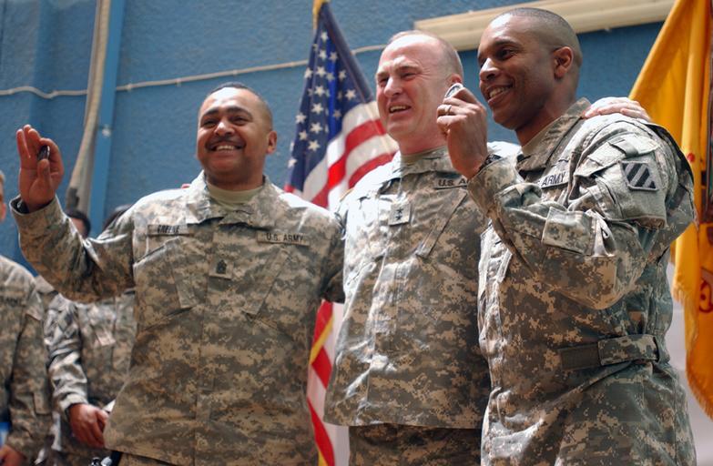 Keywords: 'Rock of the Marne' CG reenlists 17, Tuskers conduct awards ceremony DVIDS84863.jpg en Lt Col Johnnie Johnson commander 4th Battalion 64th Armor Regiment 4th Brigade Combat Team 3rd Infantry Division attached to the 1st Brigade Combat Team 4th Infantry Division Multi-National Division - Baghdad and Command Sgt Maj Rodney Greene command sergeant major 4th Bn 64th AR 4th BCT 3rd Inf Div attached to the 1st BCT 4th Inf Div MND-B proudly display their newest possession a 3rd Inf Div coin presented to them by Maj Gen Rick Lynch commander 3rd Inf Div and Multi-National Division - Center April 18 at Forward Operating Base Falcon Baghdad 2008-04-18 Sgt David Hodge https //www dvidshub net/image/84863 84863 2008-04-21 09 53 BAGHDAD IQ PD-USGov Forward Operating Base Falcon 3rd Infantry Division United States Images from DoD uploaded by Fæ |