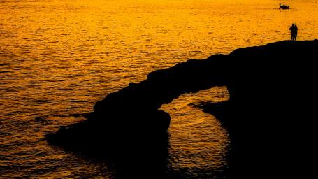 Keywords: rock sunset sea silhouette sunset landscape shadows