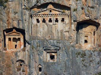 Keywords: rock tombs caves buildings rock historically carian rock tombs dalyan turkey cultural sites antiquity kaunos ruins