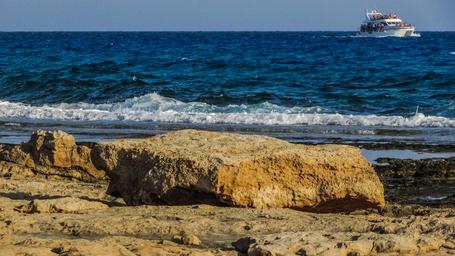 Keywords: rock wave rocky beach sea horizon blue coast summer nature cyprus ayia napa