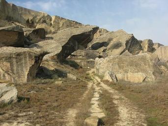 Keywords: Rocks and path in Gobustan.jpg en Rock and path in Gobustan Azerbaijan own Interfase 2008-12-13 Gobustan State Reserve Rocks Paths