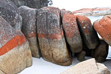 Keywords: rocks tasmania beach australia ocean lichen shore rocky nature stripe orange sand coastline peaceful