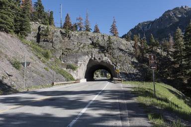 | Keywords: Rocky overpass and tunnel along the "Million Dollar Highway" below Ouray, high in the San Juan Mountains of southwestern Colorado LCCN2015632339.tif 1 photograph digital tiff file color Notes Though the entire 25 miles between those old mining towns carries the nickname it is the 12 miles immediately south of Ouray through the Uncompahgre Gorge to the summit of Red Mountain Pass that earned the highway its name This stretch through the gorge is challenging and potentially hazardous to drive; it is characterized by steep cliffs narrow lanes and a lack of guardrails; the ascent of Red Mountain Pass is marked with a number of hairpin curves used to gain elevation and again narrow lanes for trafficùmany cut directly into the sides of mountains The snow season there starts in October and snow will often close the road in winter Chains are frequently required to drive the route ; Forms part of Gates Frontiers Fund Colorado Collection within the Carol M Highsmith Archive ; Credit line Gates Frontiers Fund Colorado Collection within the Carol M Highsmith Archive Library of Congress Prints and Photographs Division ; Title date and keywords based on information provided by the photographer ; Purchase; Carol M Highsmith Photography Inc ; 2015; DLC/PP-2015 068 2015 Creator Carol M Highsmith Library of Congress Catalog http //lccn loc gov/2015632339 Image download https //cdn loc gov/master/pnp/highsm/32300/32324a tif Original url http //hdl loc gov/loc pnp/highsm 32324 No known restrictions on publication LOC-image highsm 32324 PD-Highsmith Images uploaded by Fæ Gates Frontiers Fund Colorado Collection within the Carol M Highsmith Archive Road tunnels in Colorado Million Dollar Highway Gates Frontiers Fund Colorado Collection within the Carol M Highsmith Archive Library of Congress Prints and Photographs Division Photographs by Carol M Highsmith |