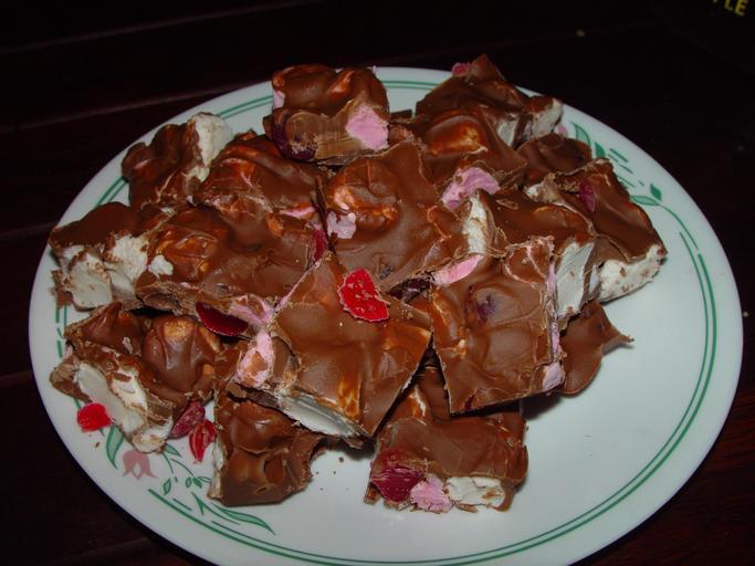 | Keywords: Rocky Road dessert.jpg en <br/> Image title Plate with Rocky Road style dessert Cherries with pink and white nougat covered in chocolate Image from Public domain images website http //www public-domain-image com/full-image/food-and-drink-public-domain-images-pictures/plate-with-fresh-meat jpg html http //www public-domain-image com/public-domain-images-pictures-free-stock-photos/food-and-drink-public-domain-images-pictures/plate-with-fresh-meat jpg Leon Brooks Not given Transferred by Fæ on 2013-02-28 This file is in public domain not copyrighted no rights reserved free for any use You can use this picture for any use including commercial purposes without the prior written permission and without fee or obligation PD-author Leon Brooks Images uploaded by Fæ Public-domain-image com Chocolate covered fruit Nougat Rocky road dessert |
