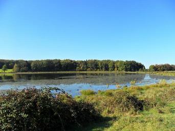 Keywords: rodder maar brohltal maar waters vulkaneifel landscape forest mood nature blue sky no cloud water shrubs mirroring reflection
