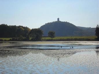 Keywords: rodder maar brohltal maar waters vulkaneifel landscape forest mood nature blue sky no cloud water mirroring reflection olbrück castle