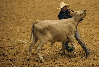 Keywords: rodeo steer wrestling cowboy cow arena competition speed usa stress danger animal sport