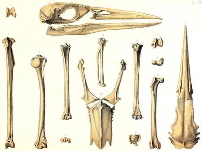 Keywords: Rodrigues Night Heron.jpg Skull and other elements of Nycticorax megacephalus Recherches sur la faune ornithologique éteinte des iles Mascareignes et de Madagascar http //archive org/stream/recherchessurlaf01miln page/n233/mode/2up 1875 Alphonse Milne-Edwards Published by G Masson in Paris France PD-old Nycticorax megacephalus Nycticorax anatomy Ardeidae bones |