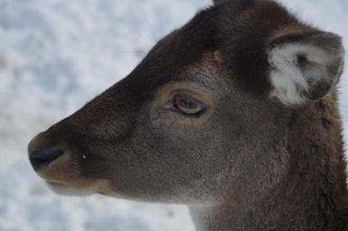 Keywords: roe deer fallow deer wild winter snow winter fur wintry cold white snowy animal mammal zoo petting zoo enclosure deer park ricke close portrait profile head