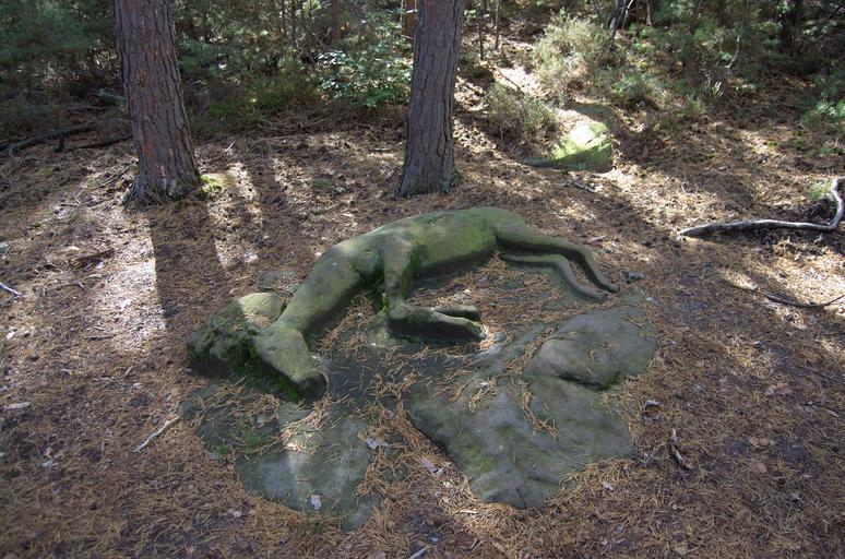 Keywords: roe deer forest stone art steinmetz craft expression sculptor lying concerns palatinate forest ground leaves