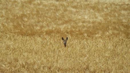 Keywords: roe deer hidden cornfield wild animal red deer grain animal view