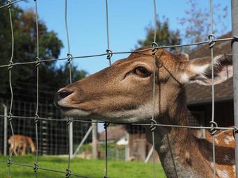 Keywords: roe deer hirsch fallow deer zoo fence hungry animal sika deer