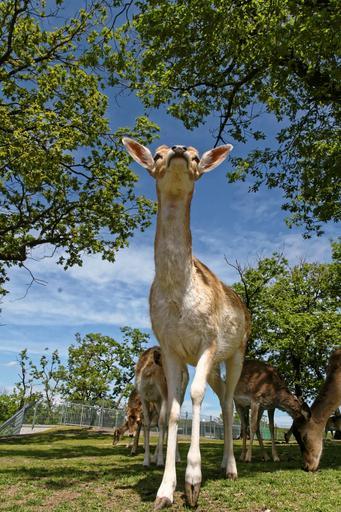 Keywords: roe deer wild fallow deer nature curious forest animal damm wild close animal
