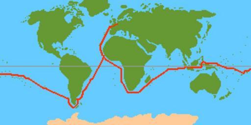 Keywords: Roggeveens journey.PNG journey of Jakob Roggeveen 1721 - 1723 own work route from various biografis 2007-05-05 Holger Behr Maps indicating exploration Netherlands in the 1720s