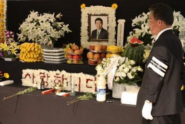 | Keywords: RohMoo-hyun.jpg en Sidewalk memorial for Former South Korean President Roh Moo-hyun set up across the street from Seoul City Hall on July 10th 2009 Photo by http //privatenotebook blogspot com/ Peter Rimar own Chitrapa 2009-07-10 2009 photographs July 2009 in South Korea Roh Moo-hyun |