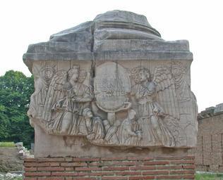 | Keywords: RomaForoRomanoBaseDecennalia.JPG Fronte della base della colonna dei Decennalia nel Foro Romano a Roma due vittorie alate recano uno scudo clipeus recante una iscrizione celebrativa dei decennalia 303 di Costanzo Cloro e Massimiano CAESARVM DECENNALIA FELICITER CIL VI 1203 VI 31261 Foto personale maggio 2005 by MM in it wiki 2005-05-17 own assumed MM Decennalia base Rome Front Ancient Roman trophies Ancient Roman inscriptions in Rome CIL VI 001203 CIL VI 031261 Victoria goddess Constantius I Maximianus Clipeus |