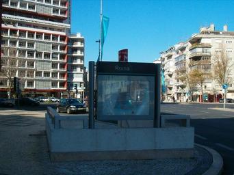 Keywords: RomaMetroLx7.JPG en Metro station Roma Lisboa Own Koshelyev Metro station Roma Lisboa Underground station entrances in Portugal Logos of Lisbon Metro Lisbon metro signage