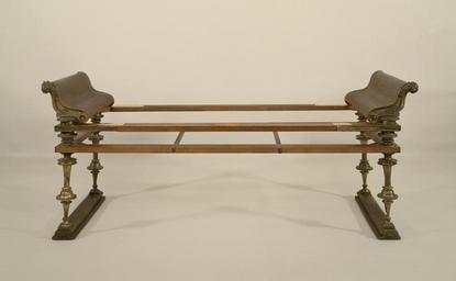 | Keywords: Roman - Banquet Couch - Walters 542365.jpg The dining room or triclinium of a Roman house derived its name from the three couches that were grouped at right angles to one another in a U-shape Wealthy citizens ate while reclining on these couches On this example bronze fittings decorate a wood frame restored Straps originally would have supported a mattress covered with luxurious textiles The ends of the couch are decorated with bronze fulcra the curving ends of the armrests which terminate in lion heads in the front and duck heads in the back Couches were highly valued pieces of furniture that were often buried with honored family members century 1 BC late Republican-Augustan bronze wood frame bedding cm 81 2 194 9 71 7 accession number 54 2365 29041 Found in a Chamber tomb near Canossa Arnold Ruesch Zurich Ruesch Collection Sale Lucerne 1936 William Randolph Hearst San Simeon 1936 by purchase Joseph Brummer New York by purchase Brummer Collection Sale Parke-Bernet Galleries New York June 8 1949 p 8 no 38 Walters Art Museum 1949 by purchase Museum purchase 1949 In Search of Ancient Treasure 40 Years of Collecting The Walters Art Gallery Baltimore 1978 From Alexander to Cleopatra Greek Art of the Hellenistic Age The Walters Art Gallery Baltimore 1988-1989 place of origin Flanders Walters Art Museum license Ancient Roman art in the Walters Art Museum Ancient Roman furniture Media contributed by the Walters Art Museum needs category review |