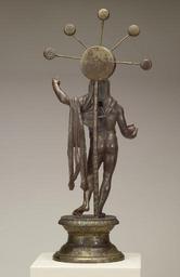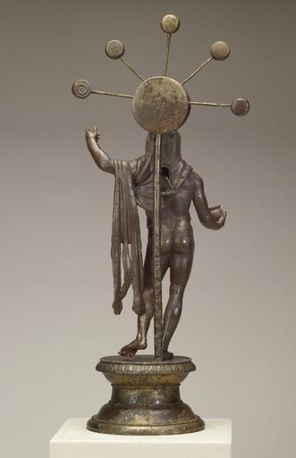 | Keywords: Roman - Sucellus - Walters 54998 - Back.jpg Sucellus Sucellus was a major Gaulish deity associated with the underworld whose attributes include his wolf-skin garment a mallet or hammer now missing from his upraised hand and a small jar called an olla This statuette is the earliest and finest of any known Sucellus image The portrayal is reminiscent of Classical Greek style and he resembles the Greek hero Heracles Behind him like a symbol of worship appears an oversized mallet with five smaller mallets radiating from it The statuette was excavated from the lararium household shrine of a Roman house in France century 1 2 bronze with base cm 32 15 5 12 3 accession number 54 998 20962 ProvenanceEvent 1866 discovery Lararium of a house in Vienne France Wills Collection Sale 1894 John Edward Taylor 1894 by purchase Taylor Collection sale 1912 Henry Walters city Baltimore Walters Art Museum Henry Walters Acquired by Henry Walters 1912 Vive la France French Treasures from the Middle Ages to Monet cite book D K Hill Catalogue of Classical Bronze Sculpture in the Walters Art Gallery Baltimore Trustees of the Walters Art Gallery 1949 Bronzes grecs et romains recherches récentes 00654643 cite journal D K Hill Le Dieu au maillet de Vienne à la Walters Art Gallery de Baltimore cite book Annemarie Kaufmann-Heinimann Ikonographie und Stil Zu Tracht und Ausstattung einheimischer Gottheiten in den Nordwestprovinzen 2012 Martine Denoyelle Sophie Descamps-Lequime Benoît Mille et Stéphane Verger Bronzes grecs et romains recherches récentes http //inha revues org/3964 Gallia 11 1953 fr 205-220 Walters Art Museum license Ancient Roman sculptures in the Walters Art Museum Sucellus Vive la France French Treasures from the Middle Ages to Monet |