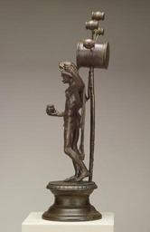 | Keywords: Roman - Sucellus - Walters 54998 - Left Side.jpg Sucellus was a major Gaulish deity associated with the underworld whose attributes include his wolf-skin garment a mallet or hammer now missing from his upraised hand and a small jar called an olla This statuette is the earliest and finest of any known Sucellus image The portrayal is reminiscent of Classical Greek style and he resembles the Greek hero Heracles Behind him like a symbol of worship appears an oversized mallet with five smaller mallets radiating from it The statuette was excavated from the lararium household shrine of a Roman house in France century 1 2 bronze with base cm 32 15 5 12 3 accession number 54 998 20962 Excavated in Roman lararium in Vienne France 1866 Wills Collection Sale 1894 John Edward Taylor 1894 by purchase Taylor Collection sale 1912 Henry Walters city Baltimore Walters Art Museum Henry Walters Acquired by Henry Walters 1912 Vive la France French Treasures from the Middle Ages to Monet The Walters Art Gallery Baltimore 1999-2000 place of origin Roman Empire Walters Art Museum license Ancient Roman sculptures in the Walters Art Museum Media contributed by the Walters Art Museum needs category review Vive la France French Treasures from the Middle Ages to Monet |
