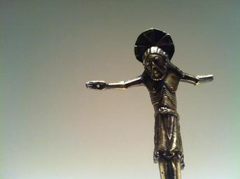 | Keywords: Romanesque Treasure of MNAC (17)- Crist 1180 Plandiura.jpg El recorregut de la secci贸 de rom脿nic culmina amb els objectes d 檕rfebreria que constitu茂en els tresors de les esgl茅sies medievals Aquests objectes tenien una funci贸 lit煤rgica per貌 a la vegada formaven el patrimoni material dels temples el seu sistema d 檃cumulaci贸 de riquesa Les vitrines mostren una selecci贸 de peces d 櫭╬oques diverses del fons d 檕rfebreria rom脿nica del Museu Dues es dediquen a l 檃nomenada obra de Llemotges la c猫lebre producci贸 d 檕bjectes de coure esmaltats amb centre en aquesta ciutat del nord d 橭ccit脿nia The Romanesque tour in MNAC culminates with objects of gold which are the treasures of medieval churches These objects have a liturgical function but once formed the material heritage of temples their system accumulation of wealth Showcases a selection of pieces from different periods of the fund of silver Roman Museum Two are dedicated to the work of so-called Limoges famous for producing objects with enameled copper center This northern city of Aquitaine Institution Museu Nacional d'Art de Catalunya 2012-10-25 11 40 13 own PD-Art Romanesque Treasure in the MNAC |