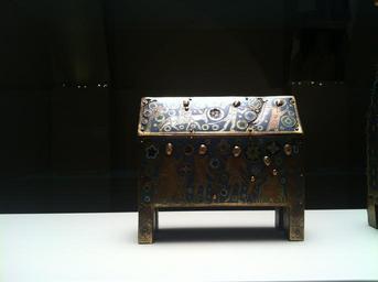 | Keywords: Romanesque Treasure of MNAC- Arqueta els sants innocents.jpg El recorregut de la secci贸 de rom脿nic culmina amb els objectes d 檕rfebreria que constitu茂en els tresors de les esgl茅sies medievals Aquests objectes tenien una funci贸 lit煤rgica per貌 a la vegada formaven el patrimoni material dels temples el seu sistema d 檃cumulaci贸 de riquesa Les vitrines mostren una selecci贸 de peces d 櫭╬oques diverses del fons d 檕rfebreria rom脿nica del Museu Dues es dediquen a l 檃nomenada obra de Llemotges la c猫lebre producci贸 d 檕bjectes de coure esmaltats amb centre en aquesta ciutat del nord d 橭ccit脿nia The Romanesque tour in MNAC culminates with objects of gold which are the treasures of medieval churches These objects have a liturgical function but once formed the material heritage of temples their system accumulation of wealth Showcases a selection of pieces from different periods of the fund of silver Roman Museum Two are dedicated to the work of so-called Limoges famous for producing objects with enameled copper center This northern city of Aquitaine Institution Museu Nacional d'Art de Catalunya 2012-10-25 11 43 01 own PD-Art Romanesque Treasure in the MNAC |