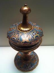 | Keywords: Romanesque Treasure of MNAC- cop贸.jpg El recorregut de la secci贸 de rom脿nic culmina amb els objectes d 檕rfebreria que constitu茂en els tresors de les esgl茅sies medievals Aquests objectes tenien una funci贸 lit煤rgica per貌 a la vegada formaven el patrimoni material dels temples el seu sistema d 檃cumulaci贸 de riquesa Les vitrines mostren una selecci贸 de peces d 櫭╬oques diverses del fons d 檕rfebreria rom脿nica del Museu Dues es dediquen a l 檃nomenada obra de Llemotges la c猫lebre producci贸 d 檕bjectes de coure esmaltats amb centre en aquesta ciutat del nord d 橭ccit脿nia The Romanesque tour in MNAC culminates with objects of gold which are the treasures of medieval churches These objects have a liturgical function but once formed the material heritage of temples their system accumulation of wealth Showcases a selection of pieces from different periods of the fund of silver Roman Museum Two are dedicated to the work of so-called Limoges famous for producing objects with enameled copper center This northern city of Aquitaine Institution Museu Nacional d'Art de Catalunya 2012-10-25 11 41 28 own PD-Art Romanesque Treasure in the MNAC |