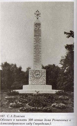 Keywords: Romanov ob.jpg en Romanov Tricentenarial Memorial in Moscow Alexander Garden erected in 1914 commemorating 300 years of the Romanov dynasty Pre-1918 appearance; later the eagle and the COA were removed and the names of tsars and emperors replaced with the names of revolutionaries or socialists including Sir Thomas More and Gerrard Winstanley ru Романовский обелиск в Александ овском саду Фото 1914-1918 гг http //i038 radikal ru/0805/19/af6f4344a1bf jpg Photo by Romanov Memorial by unknown author Memorial by Serge Vlasiev erected 1914 changed appearance 1918 between 1914 1918 PD-old Obelisk in Alexandrovsky Garden Sergej Vlasiev Monuments to Russian royalty |
