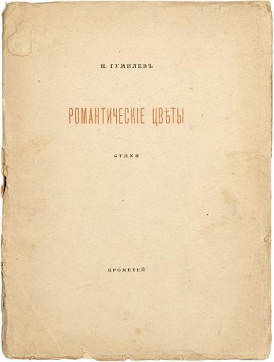 | Keywords: Romantic Flowers 1918 by Gumilev - Front Cover.jpg Cover of Romantic Flowers by Nikolay Gumilev 1918 Обложка сбо ника стихов иколая Гумилёва «Романтические цветы» 1918 cropped from http //www auction-imperia ru/wdate php t booklot i 2455 1918 author PD-old Books from Russia 1918 Book covers from Russia Nikolai Gumilev |
