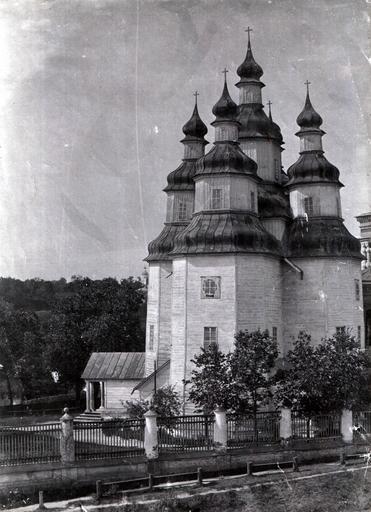 | Keywords: Romny Pokrovska Tsercva.jpg uk Ук аїна Сумська обл м Ромни Ста а Пок овська це ква знімок з облений незадовго до її пе евезення в Полтаву де вона у Велику Вітчизняну й зго іла а задньому плані стіна нової Пок овської це кви http //sobory ru/mm/ Author ca 1900 Orthodox churches in Romny PD-Art |