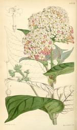 Keywords: Rondeletia amoena Bot. Mag. 77. 4579. 1851.jpg Rogiera amoena Bot Mag 77 t 4579 as Rondeletia versicolor 1851 Hooker PD-Art Rogiera amoena Curtis's Botanical Magazine Volume 77