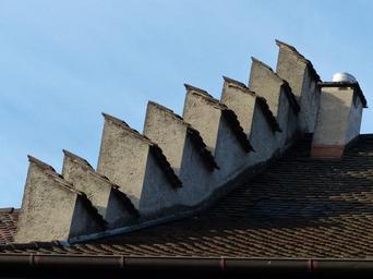 Keywords: roof roof peaks roof construction battlements fireplace