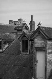 Keywords: roof rooftop bird dove seagull window building chimney property tile home house roofing old ancient alcatraz old house old town