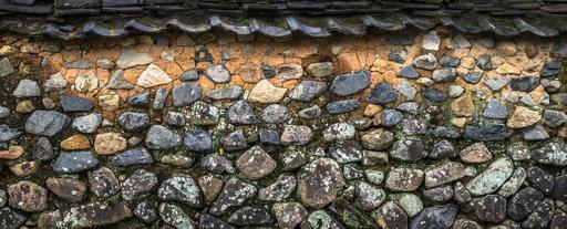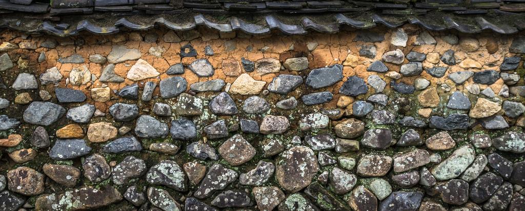 Keywords: roof tile damme wall stone stone wall ocher grey texture background construction pattern history interior wild hanok traditional old korea republic of korea