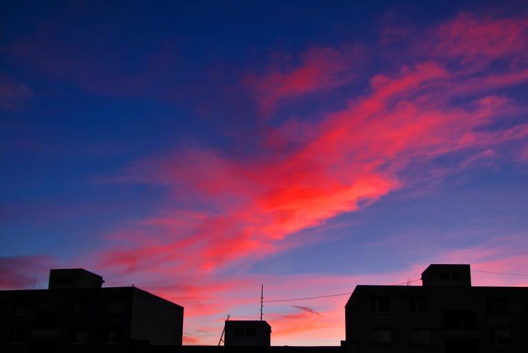 Keywords: roof tops sunrise sky cloud clouds cloudscape colors red blue silhouette
