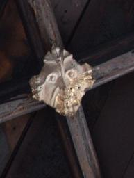 | Keywords: Roofboss2.jpg en Carved and painted detail of 16th century wooden ceiling in St Helen Witton church Northwich Cheshire showing a grotesque face own RLamb Keystones in the United Kingdom Grotesque Faces of men in art St Helen Witton Church interior |