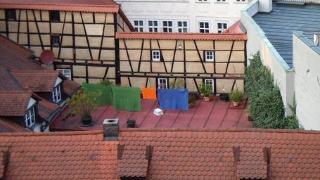 Keywords: rooftop patio deck city lifestyle concrete architecture daily life clothes drying bamberg