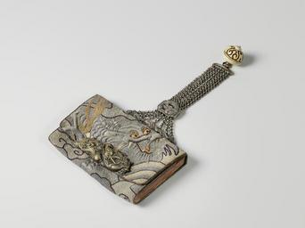 | Keywords: Rooketui-Rijksmuseum AK-MAK-1499.jpeg accession number AK-MAK-1499 credit line GWToolset Rijksmuseum nl Leren etui gedecoreerd met een geborduurde draak; slot van messing in de vorm van een draak; aan het etui een uit zeven snoeren bestaande zilveren ketting met twee brede verbindingsschakels in de vorm van draken en een ronde knop van been Label Line ca 1800 - ca 1900 leer etui Height cm 9 5 etui Lengte cm 14 5 ketting Lengte cm 18 5 exhibition history Institution Rijksmuseum leather ; textile ; silver ; brass object history Acquisition 1996 object type PD-US PD-old Data and photography rights All data and all images made available through the API are either in the public domain or are subject to a CC0 license https //www rijksmuseum nl/en/api/terms-and-conditions-of-use cc-zero place of creation Japan http //www rijksmuseum nl/collectie/AK-MAK-1499 http //hdl handle net/10934/RM0001 COLLECT 336550 handle Rooketui Uploaded with GWToolset Rijksmuseum AK-MAK-1499 http //www rijksmuseum nl/media/assets/AK-MAK-1499 Images uploaded by Fæ Art of Japan in the Rijksmuseum Images from the Rijksmuseum Textiles of Japan |