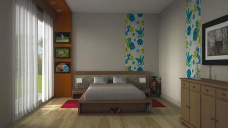 Keywords: room exhibit bed decor interior decorating tapestry 3d