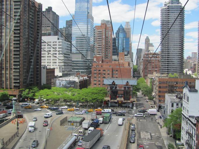 Keywords: street tramway manhattan car hour downtown tower aerial square america usa travel red day sign traffic avenue east river commercial cable summer people queensboro east side queensboro bridge tourist passengers new york