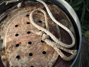 Keywords: rope colander metal fisherman fishing bucket bait fish rust rusty hobby water nature