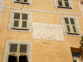 Keywords: roquebrune facade sundial time solar dial decor urban façade south france color