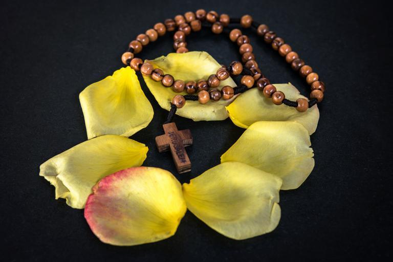 Keywords: rosary prayer prayer chain rose rose petals petals yellow christianity christian faith cross chain religion christ jesus catholic spirituality church