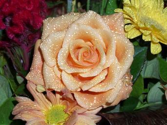 Keywords: rose blossom bloom flower nature bouquet plant petal spring flora valentine leaf bud green fresh garden color natural bunch raindrops on petals orange floral colorful bright blooming