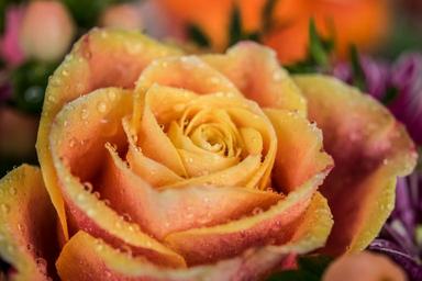 Keywords: rose blossom bloom flower frisch drop of water orange noble close nature plant