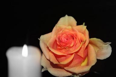 Keywords: rose blossom bloom rose bloom orange candle candlelight mourning consolation last greeting in remembrance